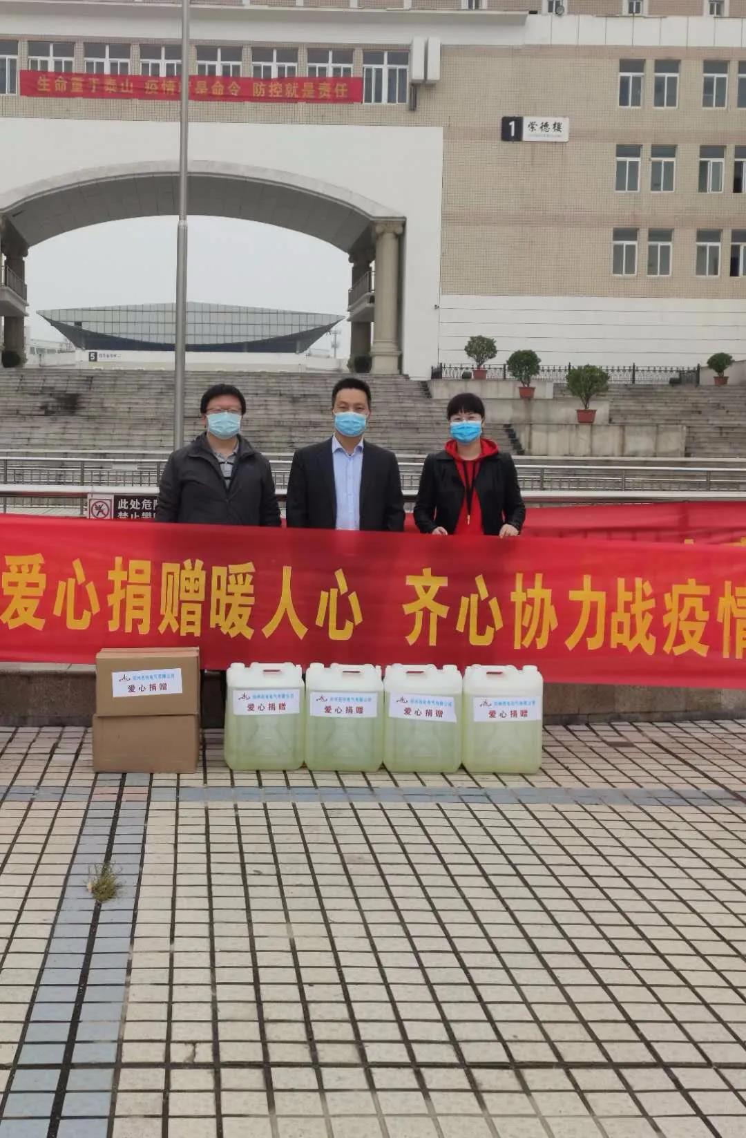 不忘初心,心系母校,2020年3月24日郑州西电电气有限公司总经理张杰兰携公司员工为汝州市第 一高中、汝州市第 二高中、郑州市郑中国际学 校送去了口罩、消毒水以及消毒洗手液等爱心抗疫物资。